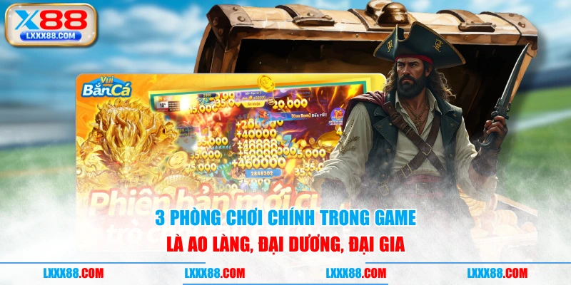3 phòng chơi chính trong game là Ao Làng, Đại Dương, Đại Gia